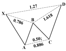 패턴을 정하는 주요 요소는 XA leg의 0.786 B포인트 피보나치 되돌림입니다.