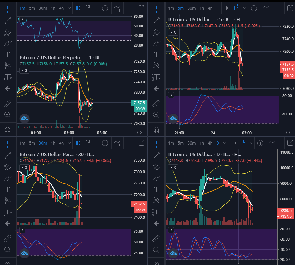 종합해서 본다면, 1분 봉에서 일반 상승 다이버전스가 나오며 반등했다가, 5분/30분 데드크로스로 인해 하락이 일어날 것으로 보고있습니다.