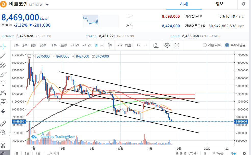 2019/11/18 - [비트코인(암호화폐) 아이디어] - 비트코인 시세 전망 차트분석 <19.11.18. 22:00>