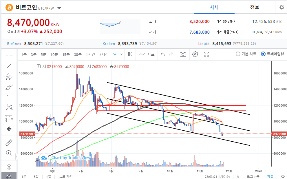 2019/11/24 - [비트코인(암호화폐) 아이디어] - 비트코인 시세 전망 차트분석 <19.11.24. 19:50>