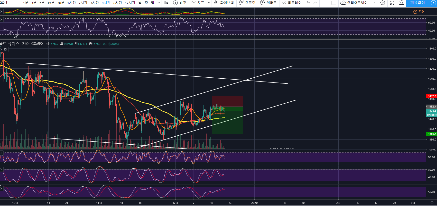 2019/12/13 - [해외선물 아이디어] - 골드(금) 시세 전만 차트분석 <19.12.13. 21:40>