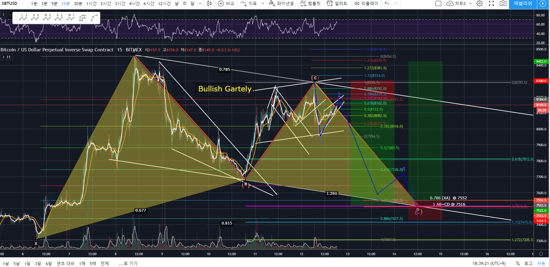 2) Bullish Gartely 0.786(XA)가 7500대에 형성