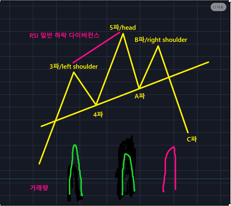 3파가 left shoulder, 4파가 넥라인 기준점