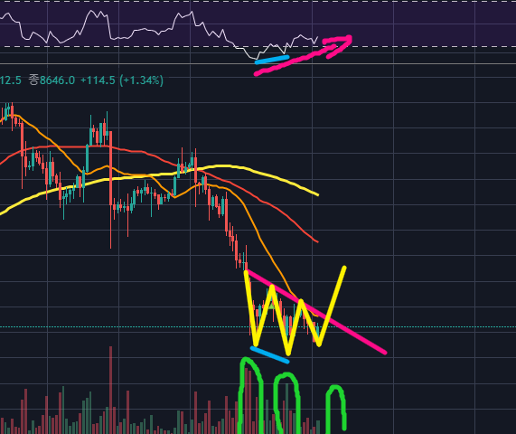 제일 안전한 매매는 거래량과 다이버전스 확인 후 넥라인 돌파 후 진입하는 것입니다.