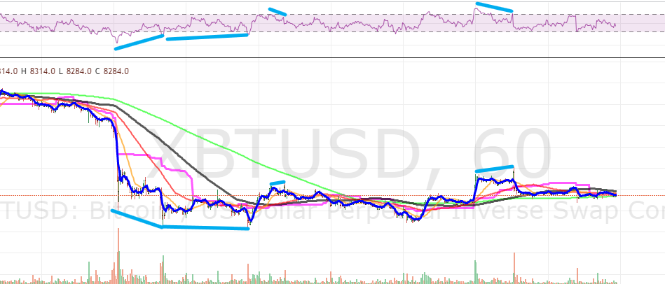 간혹 스윙매매를 위해 바닥이나 고점을 잡으시는 분들이 있을텐데, 그런 분들은 대체로 1일 봉이나 4시간 봉의 RSI 일반 다이버전스를 확인하고, 이 곳에서 15분/30분/1시간 RSI 일반 다이버전스를 확인, 여기까지 확인되었다면 5분/3분/1분의 RSI 일반 다이버전스가 나오는 것을 보고 진입하는 경우가 있습니다.