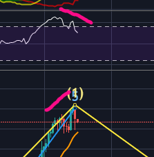 위의 차트대로 5파 상승이 나왔고, 1시간 봉 일반 하락다이버전스가 출현하였습니다.
