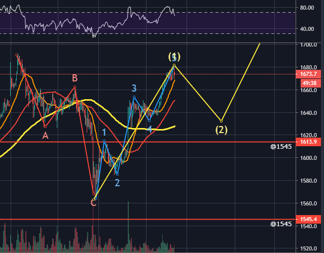 안녕하세요. 골드(금) 시세전망 차트분석을 시작하겠습니다. 지지난번 abc파동으로 하락한다고 분석하였다가, abc보다는 5파 하락인 것으로 보았었는데 반등이 꽤나 많이 나왔네요. ABC의 B파 반등이 맞았던 것으..