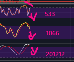 533은 쌍봉, 1066도 쌍봉 후 데크직전, 201212는 과매수 상태로 이 또한 조정이 일어나면 데드크로스 후 하락할 것으로 보입니다.