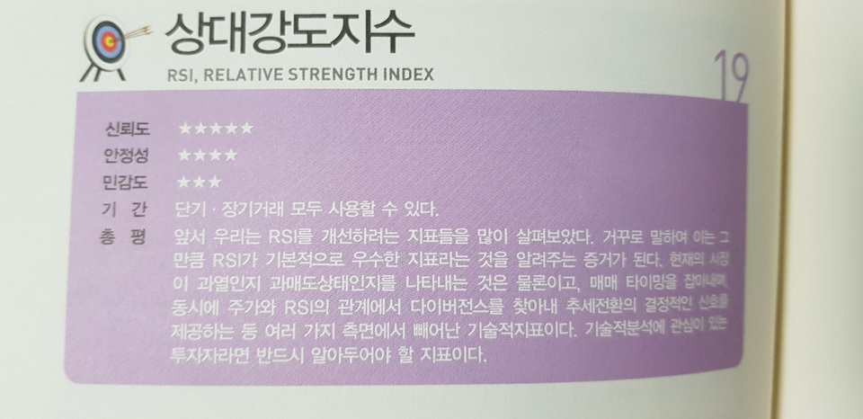 RSI는 신뢰도 5, 안정성 4, 민감도 3으로 준수한 점수를 받았습니다.