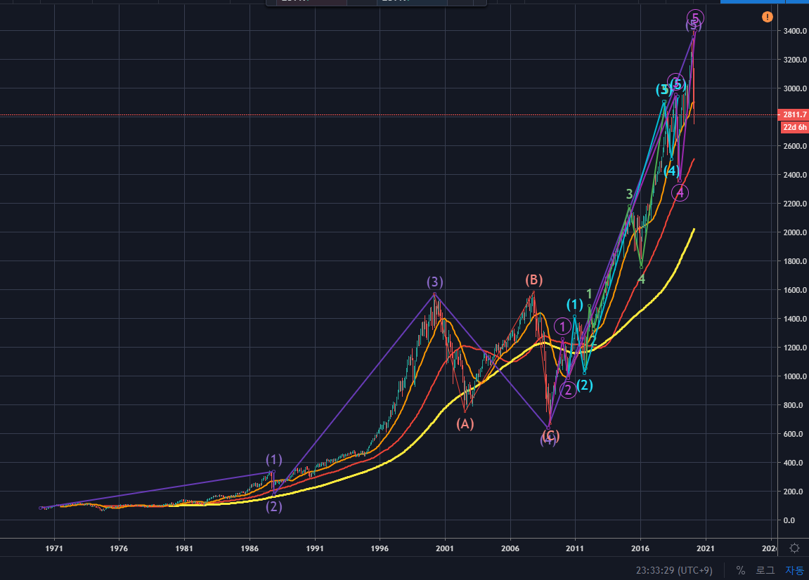 월봉의 너무 장기간의 파동이기 때문에, 제 카운팅이 틀릴 가능성이 훨씬 많지만,