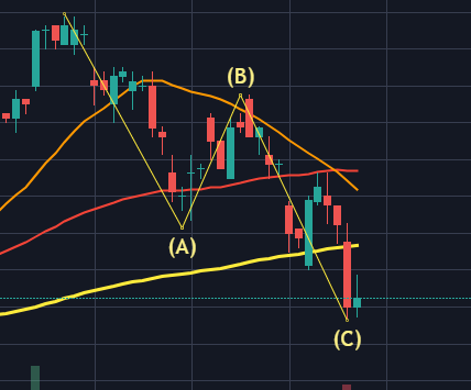 ABC가 1:1자리가 나오면서 조정이 멈췄네요.