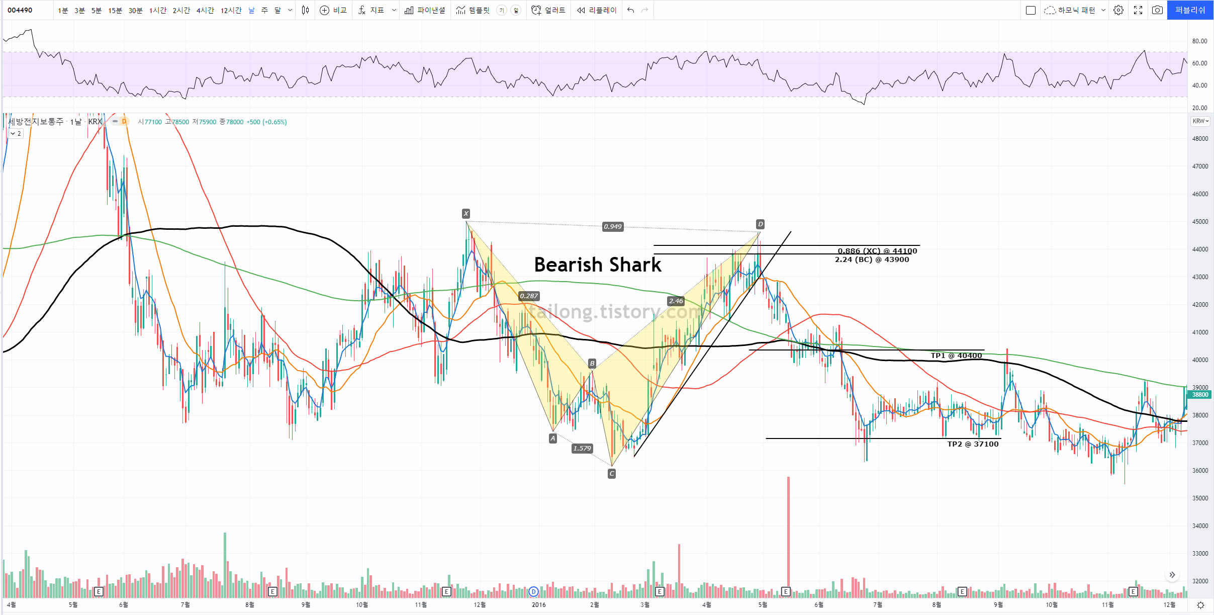 세방전지 일봉 Bearish Shark Pattern (3)