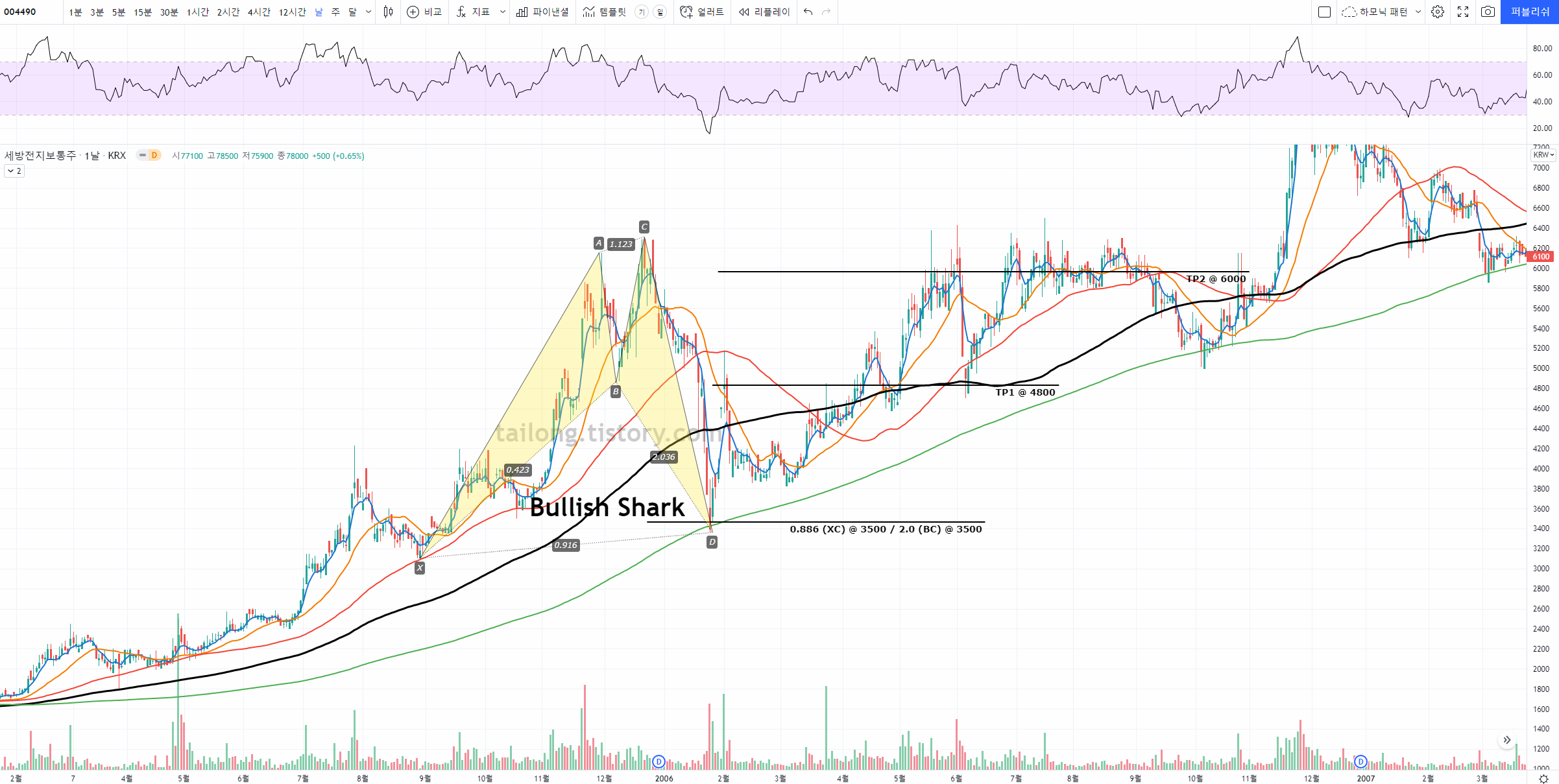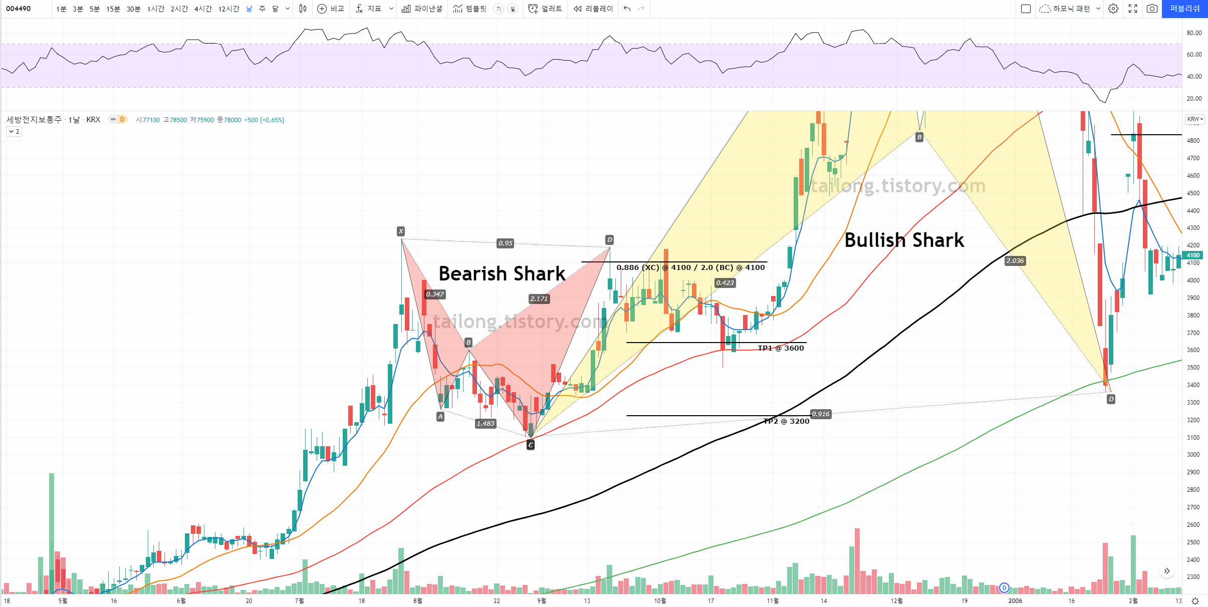 세방전지 일봉 Bullish Shark Pattern (4)