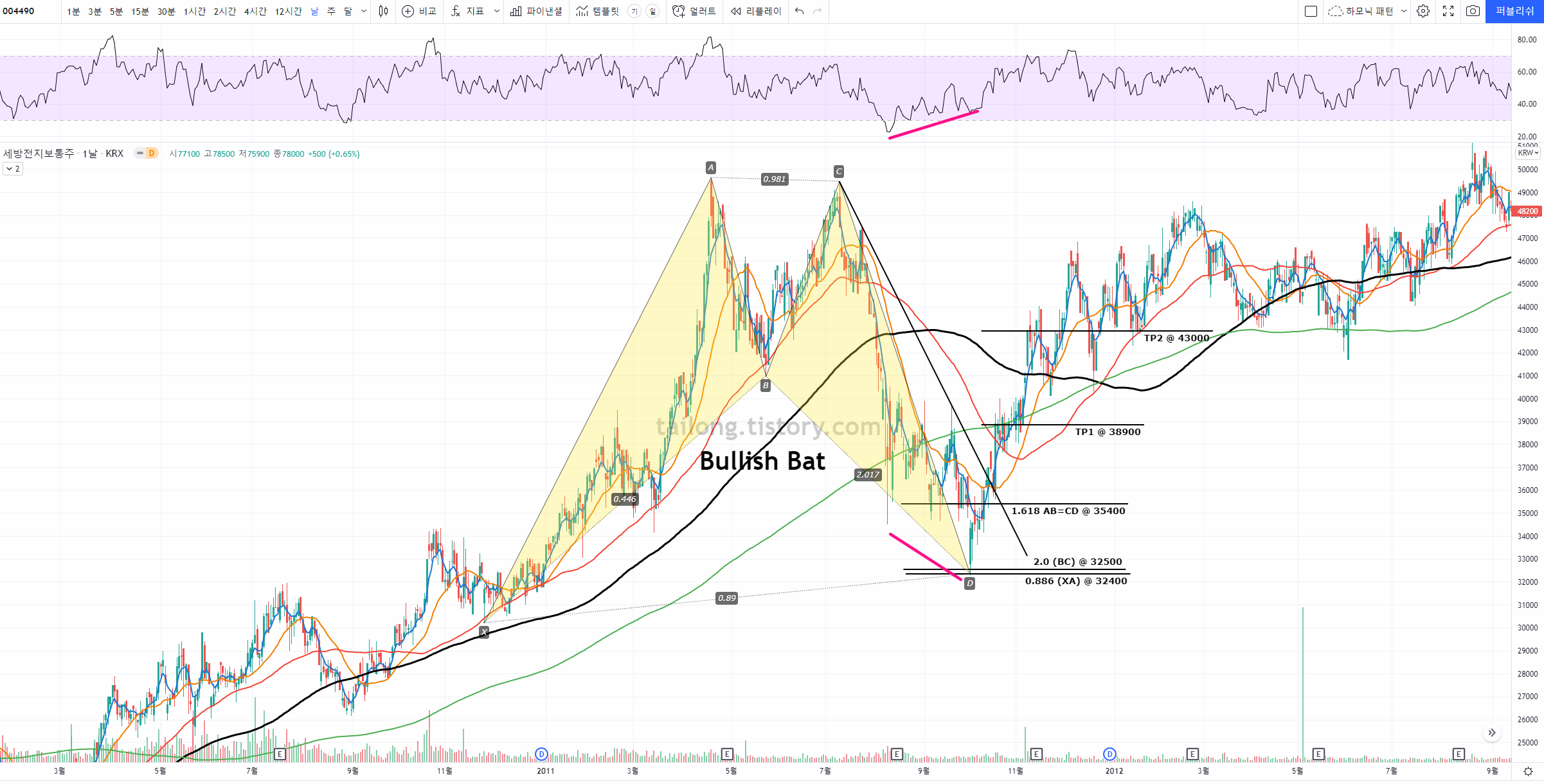 세방전지 일봉 Bullish Bat Pattern (5)